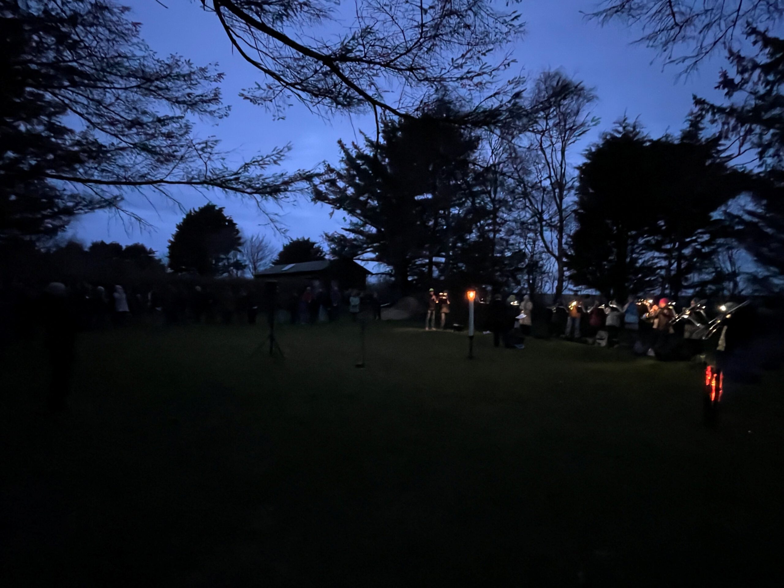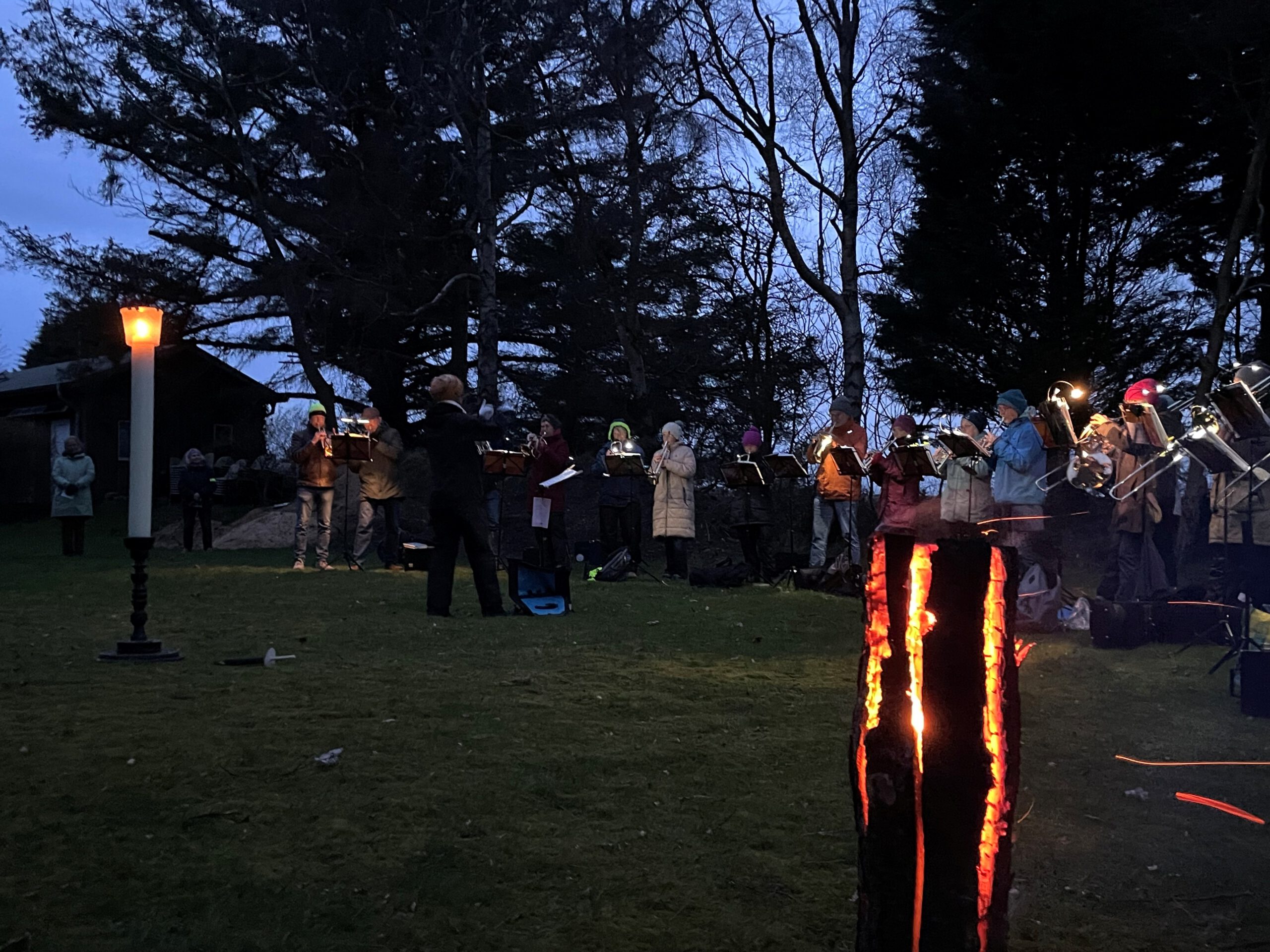 Nach dem Glockengeläut zur Jahreswende begleitete der Posaunenchor alle , die in Nebel zur Kirche gekommen waren, auf ihrem Weg in das Neue Jahr. Leider löschte der Regen die Wunderkerzen bald – aber der Start war wieder geglückt! Seegent Neijuar!